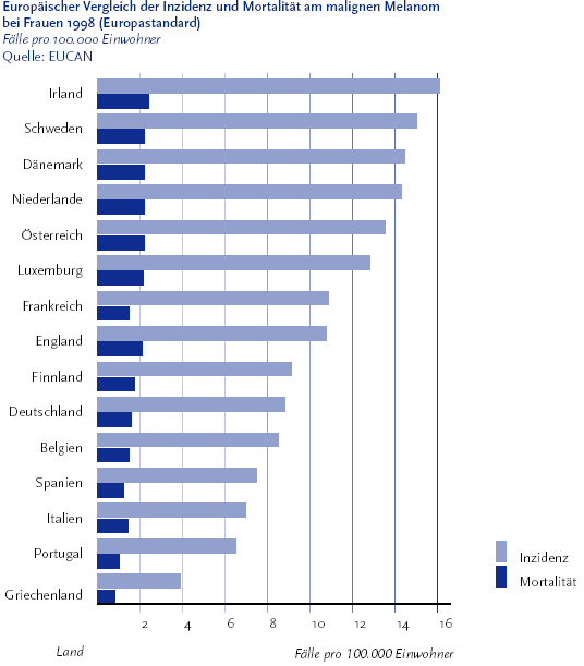 Europaischer Vergleich Der Inzidenz Und Mortalitat Am Malignen Melanom Bei Frauen 1998 Europastandard
